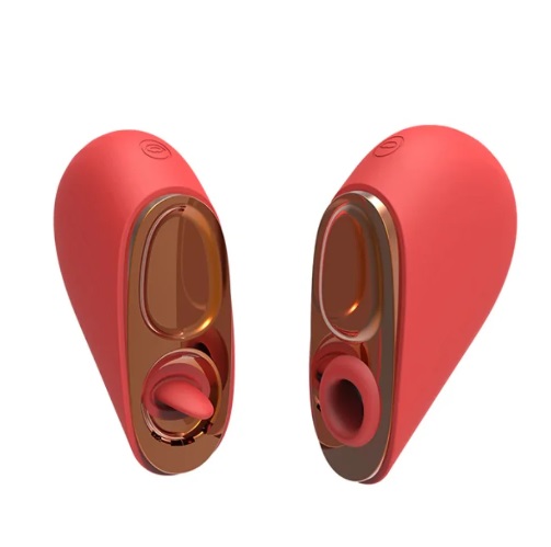 Estimulador clitoriano duplo, sendo: Um estimulador língua mágica, e um estimulador por ondas de pressão.