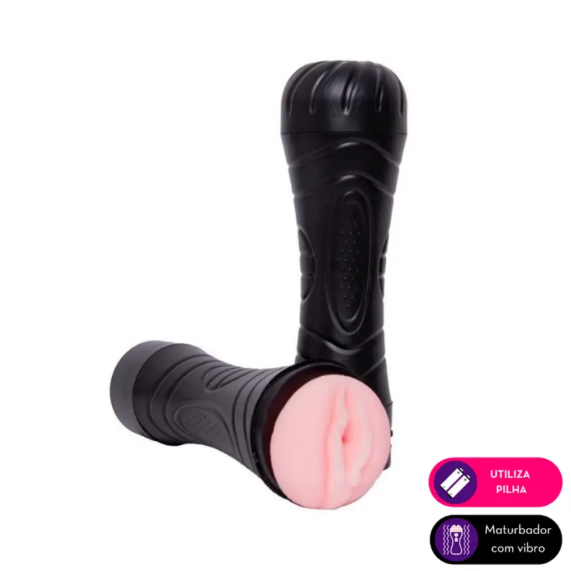 Masturbador masculino em formato de lanterna com orifício penetrável (vagina) na base. Possui cápsula vibratória, textura e relevo interno estimulador. A cápsula é removível para higienização.