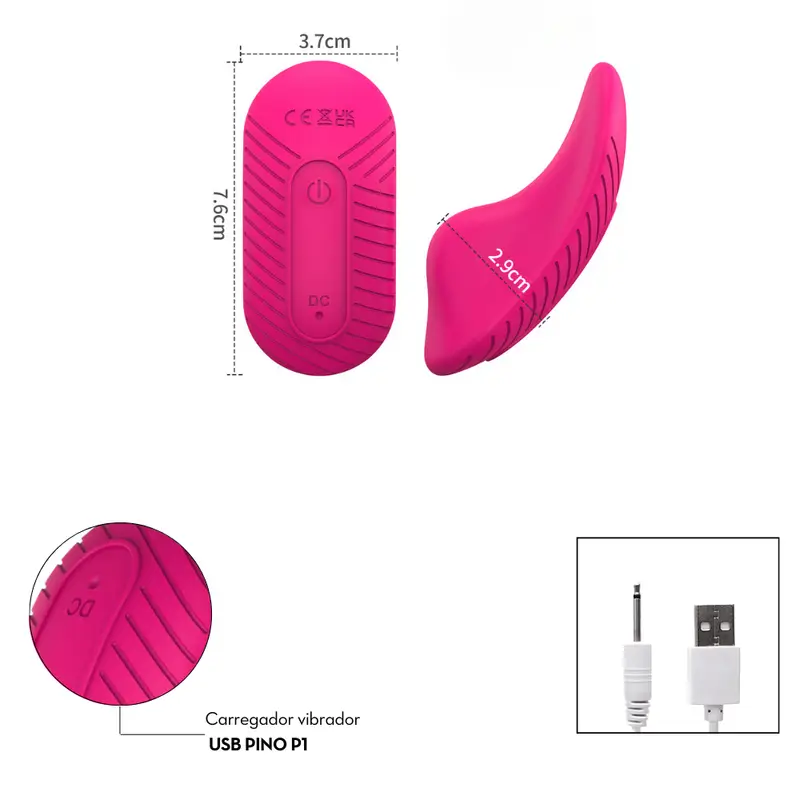 Vibrador de Calcinha em silicone com relevos estimuladores de clitóris. Possui toque suave e aveludado.